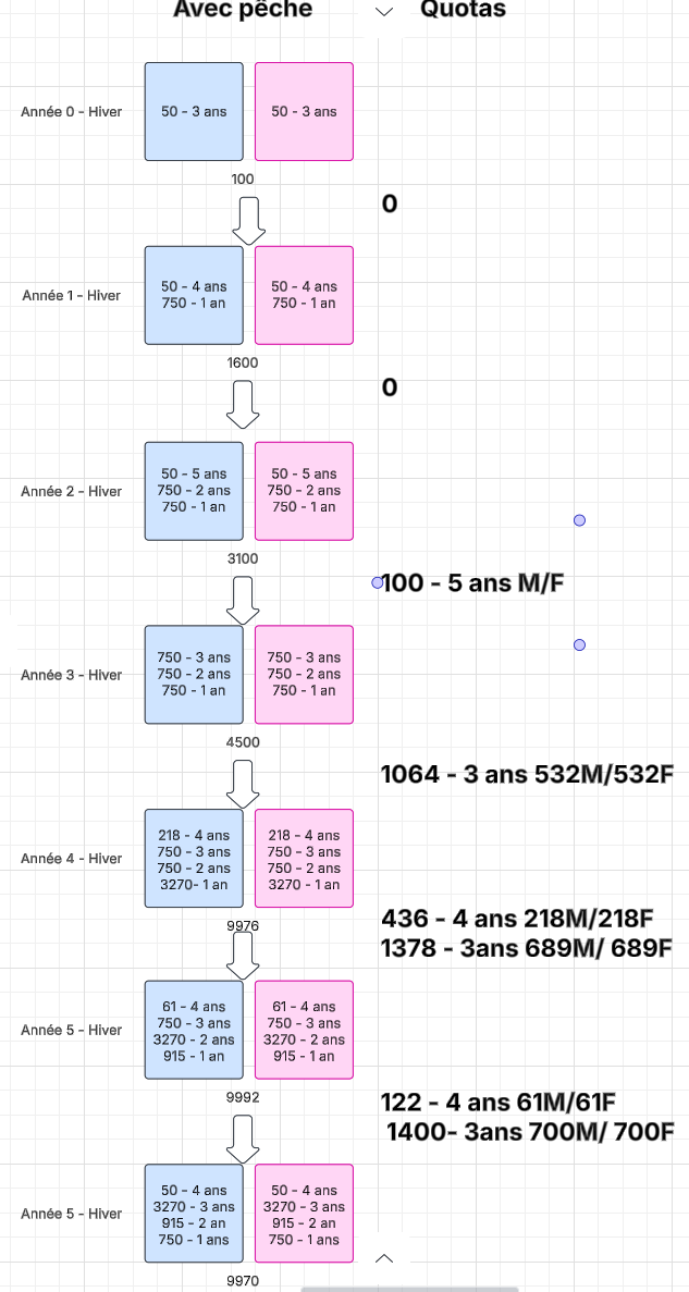 2- Est-ce que les quotas incluent l'âge des truites, leur taille, leur masse ?
